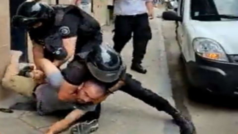 El infractor fue retenido por el cuello y arrastrado violentamente. Según los testigos, el hombre fue golpeado y pisado. "El muchacho manejaba una Fiorino y todo fue por una multa. La Policía se lo llevó y lo llevaron a la comisaría. Nos dijeron que lo iba a ver un médico, pero lo golpearon mucho", agregó hoy un vecino.
