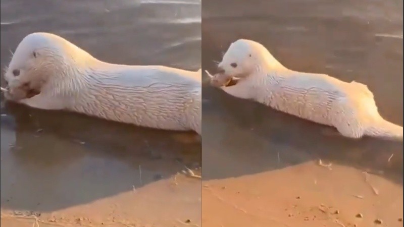 El animal, de pelaje completamente blanco, fue fotografiado y filmado mientras se desplazaba por la orilla de un curso de agua dulce, lo que despertó la sorpresa entre quienes presenciaron el momento. La especie, científicamente conocida como Lontra longicaudis, también es llamada nutria neotropical o perro de agua.