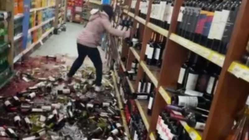 Su reacción del lunes quedó grabada por las cámaras de seguridad del local, y el video rápidamente se viralizó en las redes. Entre gritos, se avalanza sobre las botellas de vidrio y sin dudarlo las tir al piso generando un enorme charco de vino.