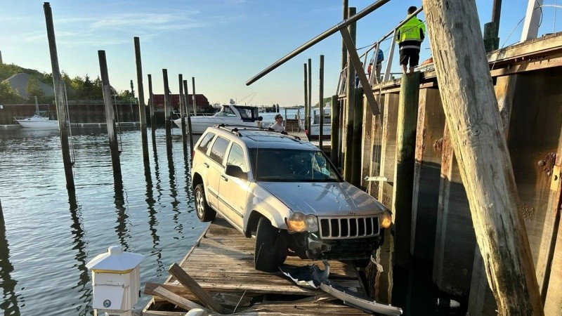 De acuerdo a lo que se ve en el clip, el neumático del lado del conductor quedó colgando sobre el agua en el lado más cercano al muelle de madera, mientras que la parte trasera del automóvil quedó inclinada hacia arriba. El impacto también demolió las tablas de madera del muelle flotante en el punto donde el faro del lado del pasajero inicialmente se estrelló contra la plataforma, informó el medio estadounidense News12.