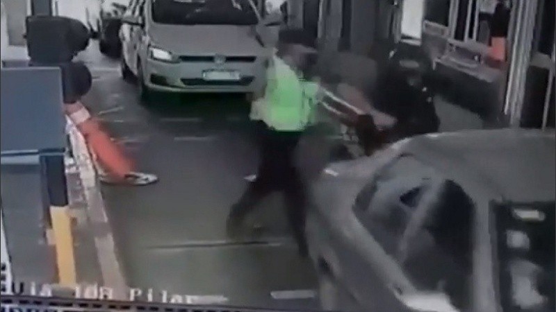 El hombre intentó colarse por detrás de un auto al que el empleado de la cabina ya le había levantado la barrera, pero el agente que estaba muy cerca de él lo bajó de su vehículo a bastonazos y le siguió pegando mientras lo tenía contra el piso.