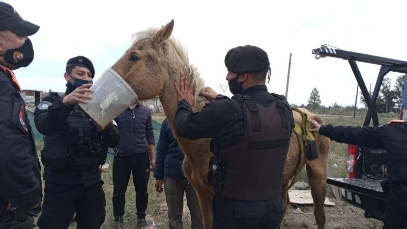 Un caballo en muy mal estado de salud fue rescatado por personal de la unidad de Ecológica de la policía Comunitaria de Rosario. El hecho sucedió el pasado sábado cerca del mediodía en ciudadela 1356, zona noroeste de la ciudad. El animal se encontraba tirado en un descampado sin poder ponerse en pie por lo que se necesitó de un operativo especial.