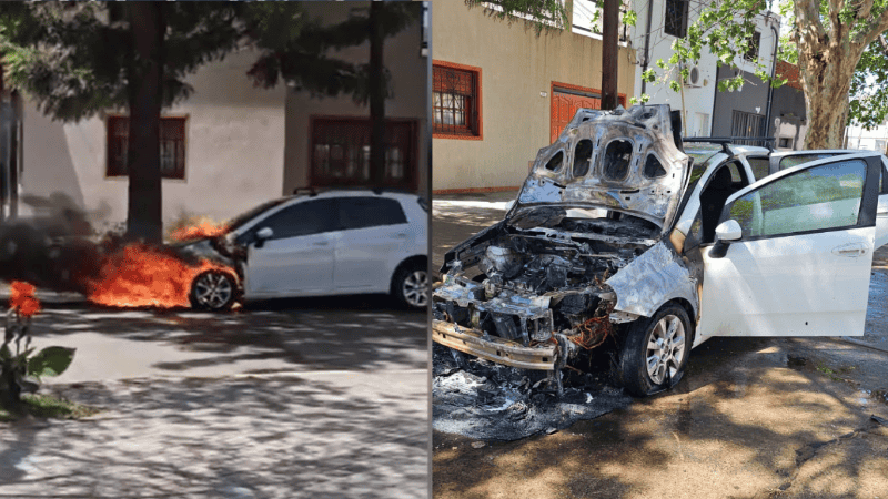 Testigos del hecho compartieron imágenes de lo ocurrido con Radio 2 y Rosario3. Actuaron los Bomberos pero buena parte del auto quedó consumido por las llamas.