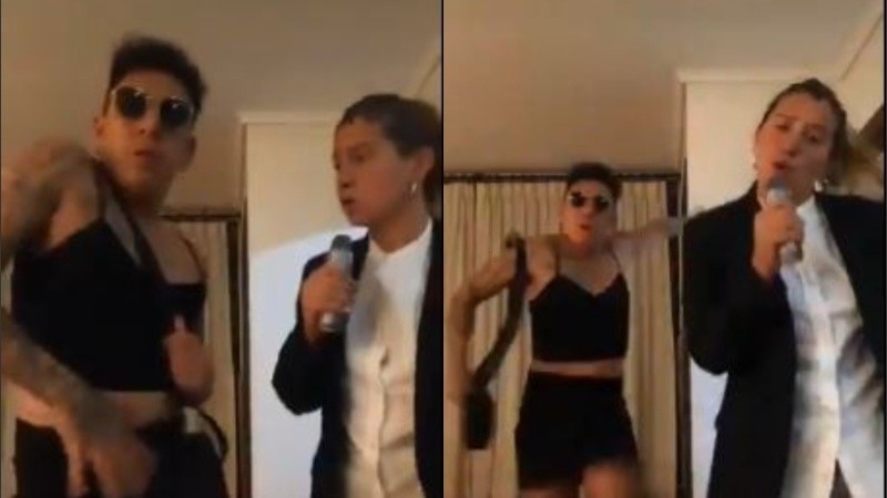 El video fue compartido en la cuenta de @c.carosso y lo más llamativo es que se lo ve al ex Newells vestido de mujer.