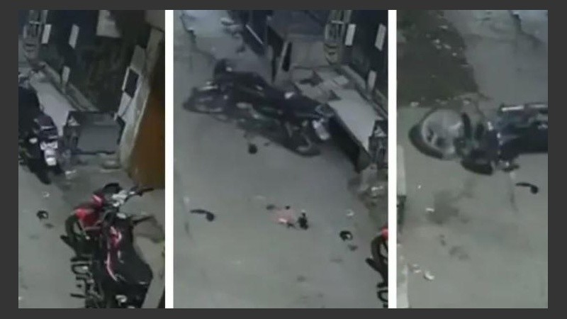En las imágenes captadas por la cámara de seguridad del lugar, se puede ver como la motocicleta con el motor apagado, de pronto, en una jornada calurosa y sin viento, y sin la presencia de ninguna persona, toma velocidad, hace una especie de maniobra extraña y termina volcando, como si alguien realmente la estuviera manejando.