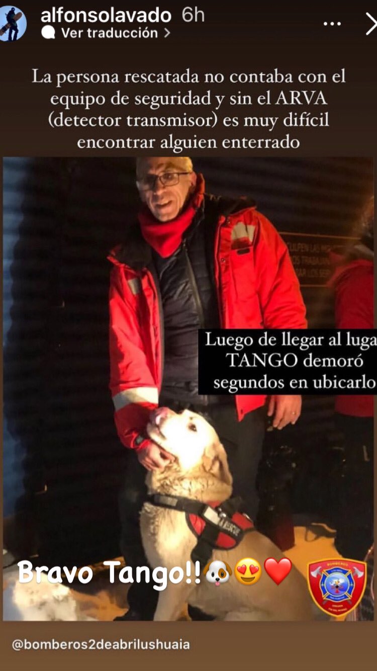⭕️“Tango recorrió unos 10 metros y empezó a ladrar y a rascar la nieve. Lo había encontrado”, contó el bombero pic.twitter.com/MkJfmbevIy