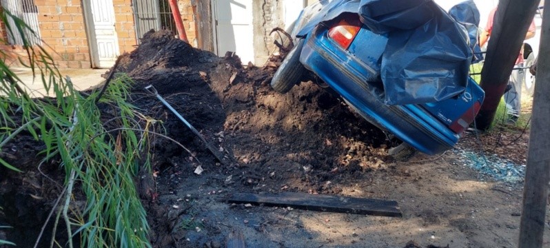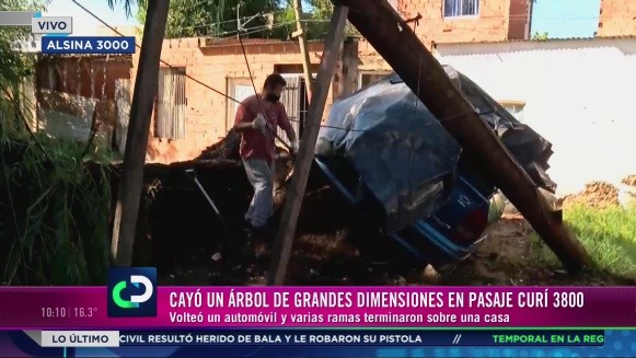 Entre los 60 árboles caídos por la gran tormenta de este lunes por la madrugada, uno de ellos arrastró cables, levantó una columna y volteó un auto. Ocurrió en Pasaje Curie al 3800, a la altura de Alsina.
