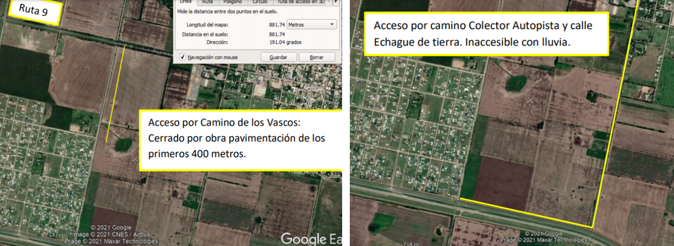 Según contó a Rosario3 María José, una de las habitantes del lugar a un costado de la autopista a Córdoba, se iniciaron trabajos para pavimentar el ingreso por calle Camino de los Vascos pero sin habilitar nuevos accesos.