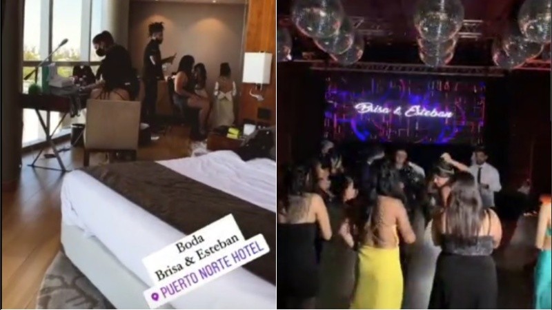 En una historia de Instagram a la que tuvo acceso Rosario3, se puede ver cómo se prepararon los novios el viernes por la tarde en una lujosa habitación de Puerto Norte con vista privilegiada al río Paraná.