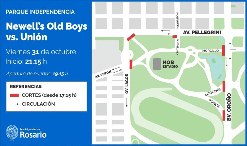 Newell's Old Boy recibe a Unión de Santa Fe, desde las 21.15 en el estadio Marcelo Bielsa. Es por esto, que se dispuso desde las 17.15 un procedimiento de control del tránsito en la zona del Parque Independencia con una serie de interrupciones.