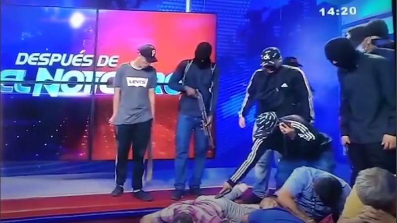 Uno de los criminales encapuchados habló ante la cámara y dijo: “Para que sepa que no se deben jugar con las mafias”. Luego obligaron a uno de los presentadores a dirigirse en vivo y pedir que se retire la Policía. De inmediato iniciaron los disparos en medio de gritos de los trabajadores.