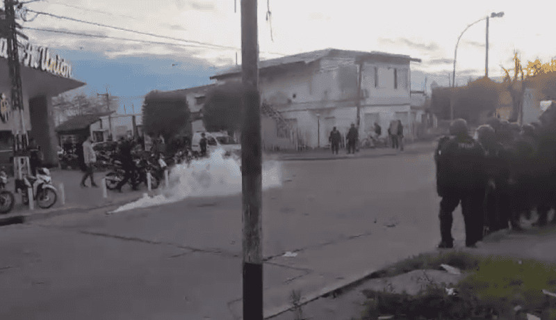 De forma repentina, efectivos del cordón policial comenzaron a disparar balas de goma hacia los hinchas de Unión que permanecían en la puerta de la institución. El estallido de los disparos provocó el desconcierto y la reacción inmediata de la gente, que respondió arrojando piedras y botellas, mientras exigían a gritos que la policía se retirara para poder desconcentrar en paz.
