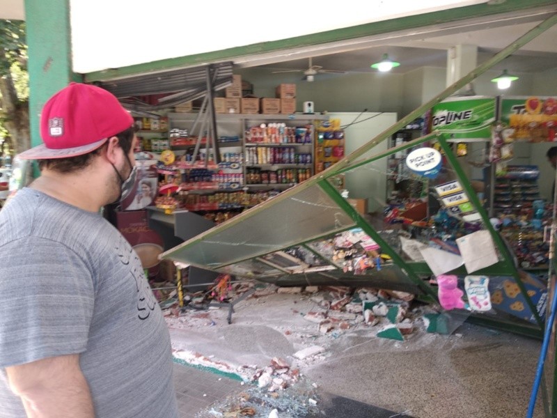 “Estaba en la ventana, despaché al último cliente y me fui al depósito a buscar mercadería. Mientras volvía siento el impacto y veo que un auto me rompe toda la ventana del frente. Miro y era un señor que iba con una señora, en la desesperación el tipo aceleró y arrasó con toda la estructura del frente, fue un desastre”, relató en Dos horas Pico (Radio 2), Damián que es el titular del comercio.