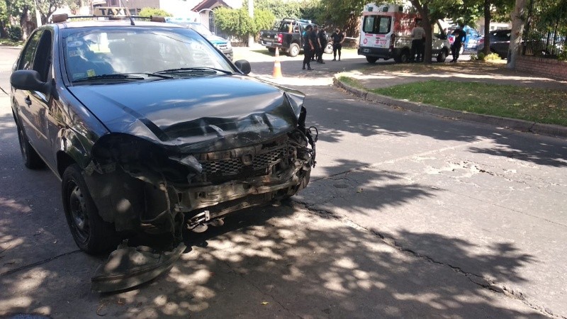 El taxi, que venía sin pasajeros, quedó sin su paragolpe delantero y con un abollón en su capot, pero parecía no presentar un daño mayor. Por el impacto, personal del SIES trabajó en el lugar realizando primeras curaciones a ambos conductores y tuvo que trasladar a la mujer policía que resultó golpeada.