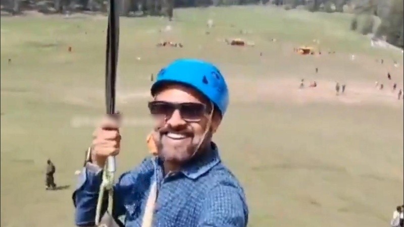 Un hombre que se tiró desde una tirolesa filmó todo desde la altura. En el clip, que se volvió viral entre los internautas, se lo ve sonriendo colgado del arnés, mientras se escuchan los estruendos y la gente corre para protegerse del ataque.