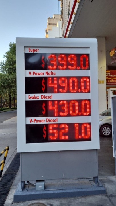 Tomando un vehículo promedio con un tanque de 48 litros, completarlo de nafta común pasó a costar 18 mil pesos. Ponerle Infinia $22.416 y llenarlo con Infinia Diesel $24.000.