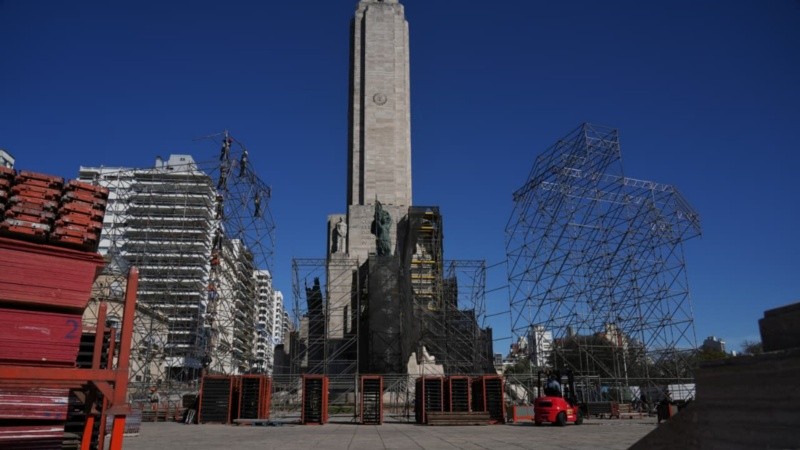 Ni lerdos ni perezosos, tras el anuncio del show gratuito que darán Nicki Nicole, Juan Carlos Baglietto y la Orquesta Sinfónica Provincial de Rosario el martes 7 de octubre en el Monumento Nacional a la Bandera, este miércoles ya comenzó el armado del escenario frente a la torre del máximo emblema de la ciudad.