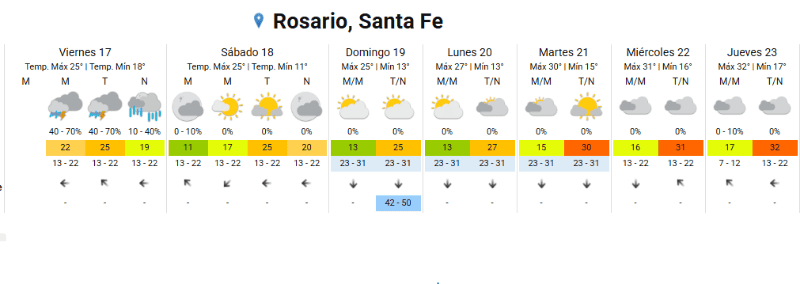 Este viernes Rosario amaneció con un cielo algo cubierto y amenazante de lluvias. Según el Servicio Meteorológico Nacional (SMN) se esperan tormentas aisladas para la mañana y tarde de hoy.