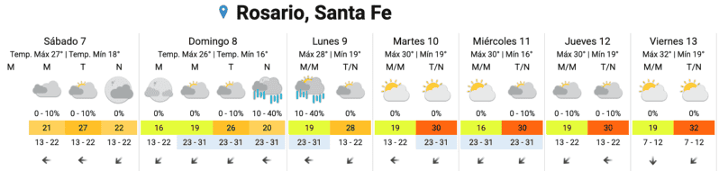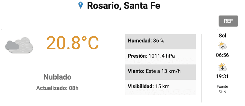 De acuerdo a los datos del Servicio Meteorológico Nacional (SMN), ya desde temprano el termómetro rondaba los 20ºC. La humedad se ubicaba por el 86% y el viento soplaba desde el este a unos 13 km/h. Con estas condiciones, la visibilidad era óptima, y la mañana se podía disfrutar con algo de ropa liviana.