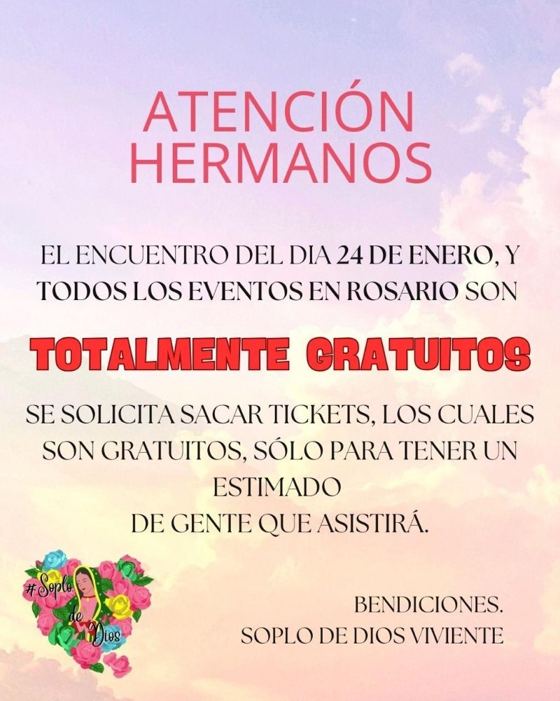 De acuerdo a lo que señalaron, algunos fieles expresaron que habían recibido ofertas de entradas a 5 mil pesos. Es por eso que Leda y sus colaboradores remarcaron que el acceso nunca tuvo costo; tampoco ahora. Las reuniones de oración cantada se efectúan una vez al mes y para acceder hay que gestionar un ticket que es gratuito.