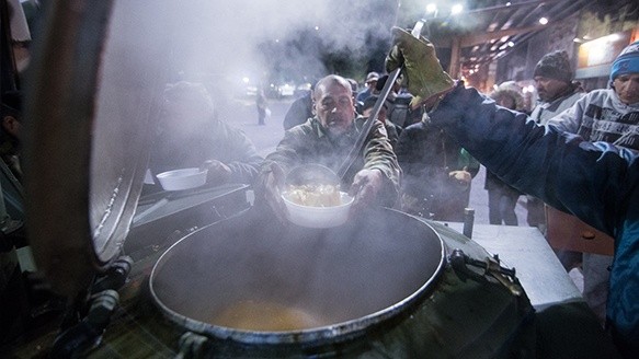 Integrantes del Centro de ex Combatientes de Malvinas de Rosario salieron con su cocina móvil para ofrecer una porción de alimento a personas en situación de calle. El frío intenso de este año realzó aún más el trabajo que llevaron a cabo