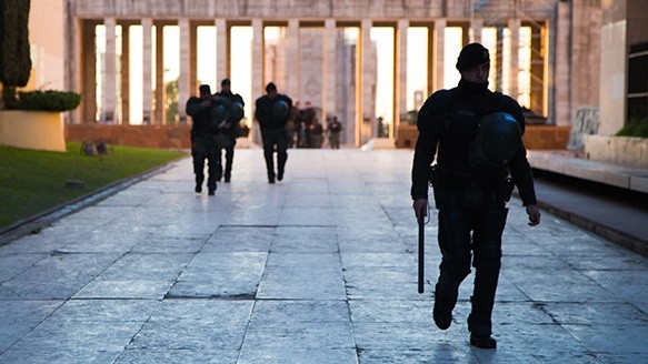 Fría jornada en el Monumento donde el presidente Mauricio Macri visitó la ciudad. Hubo un amplio operativo de seguridad en la zona