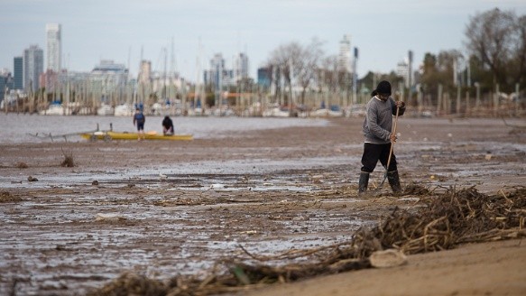 Un paisaje diferente se vio en la costa rosarina tras una fuerte merma en el caudal de agua