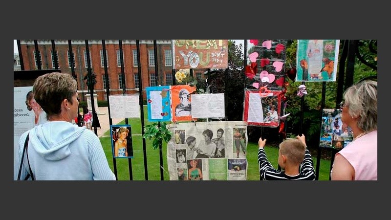 Más temprano, cientos de seguidores de la princesa Diana se acercaron a la ex residencia de la princesa en Londres, el céntrico palacio de Kensington, para dejar flores, cartas, fotos y tarjetas de recuerdo para conmemorar el aniversario de su muerte.