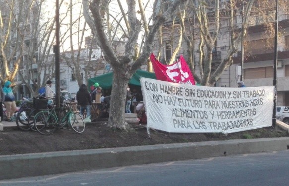 Desde el jueves un grupo de familias nucleadas en el Frente de organizaciones en lucha acampa en la plaza 25 de Mayo frente a la Municipalidad. Piden comida y herramientas de trabajo. La intendenta Mónica Fein tildó la medida de “extorsiva” y aseguró que no va a permitir “que ninguna carpa nos quiera exigir algo más de lo que hacemos todos los días”.