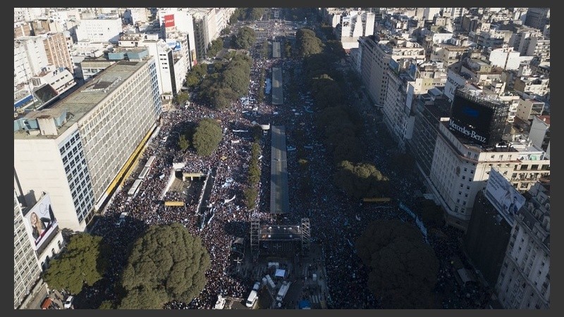 El acto fue masivo y colmó la avenida 9 de Julio, entre el Obelisco y Belgrano. Los grupos autodenominados “pro vida” se hicieron presentes con el color celeste, que surgió como respuesta al verde del movimiento que impulsa la ley.