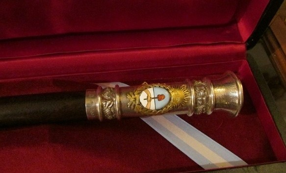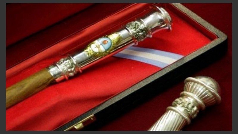 El bastón más famoso de la Argentina es de plata y madera de urunday, y tiene sólo los laureles y el sol hechos en oro. Tiene el escudo y 24 cardos, uno por cada provincia argentina, para darle un sentido federal y republicano.