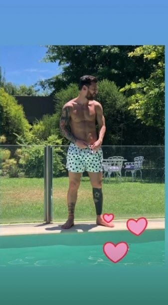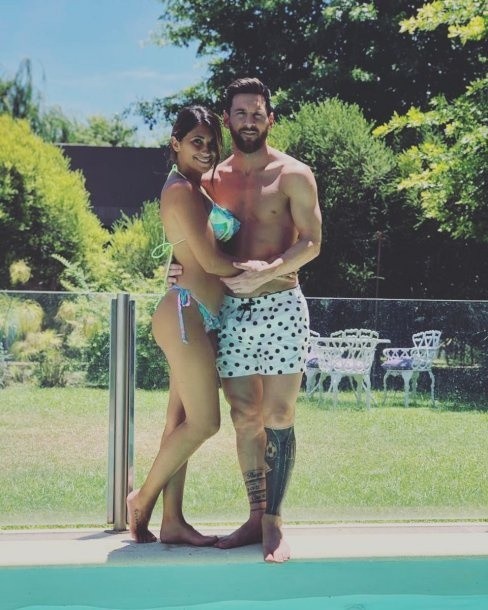 La pareja aparece abrazada, al borde de una pileta, bajo los casi 35 grados del sur santafesino. En otra foto, Leo muestra sus músculos y Anto llenó la imagen de corazones.