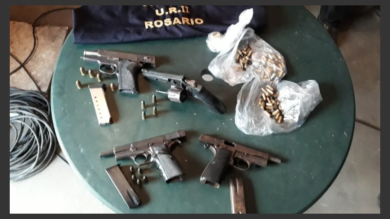 En los operativos se incautaron más de 12 mil pesos, dos pistolas calibre 45, tres pistolas calibre 9 milímetros, dos revólveres calibre 38, una pistola calibre 22 y una granada de mano que luego fue desactivada por la Brigada de Explosivos.