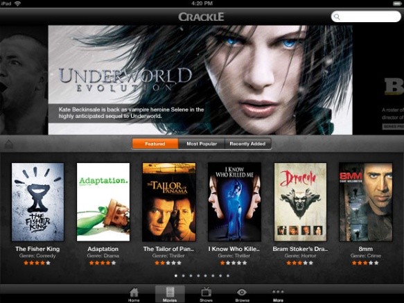 La segunda recomendación de la lista es Crackle, la plataforma de televisión por internet de Sony Pictures Television.