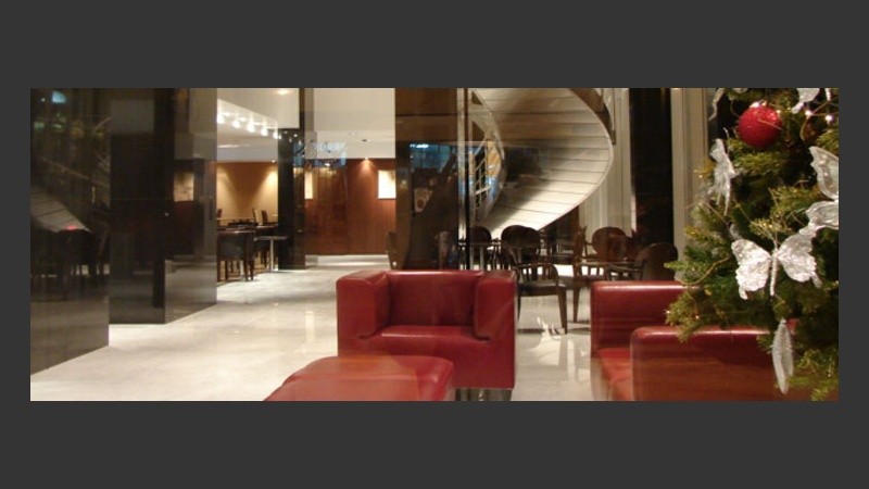 Con una decoración minimalista el lobby del hotel cuenta con mármol blanco de Carrara en los pisos, paredes de caoba lustrada y un juego de sillones amplios de cuero rojo.