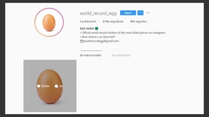 La cuenta @world_record_egg (huevo récord mundial) se creó para conseguir la mayor cantidad de "me gusta" posible en la red social de las fotografías. Lo logró este domingo, cuando por la tarde alcanzó los 18 millones y superó entonces la marca vigente de Kylie Jenner.