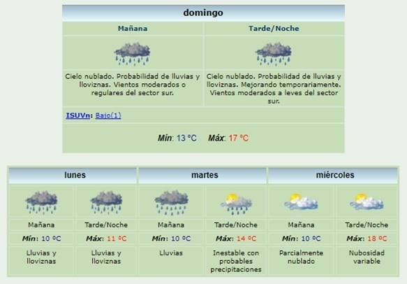 La máxima de este domingo alcanzará los 17 grados, el lunes no superará los 11 grados y el martes llegará a 14.
