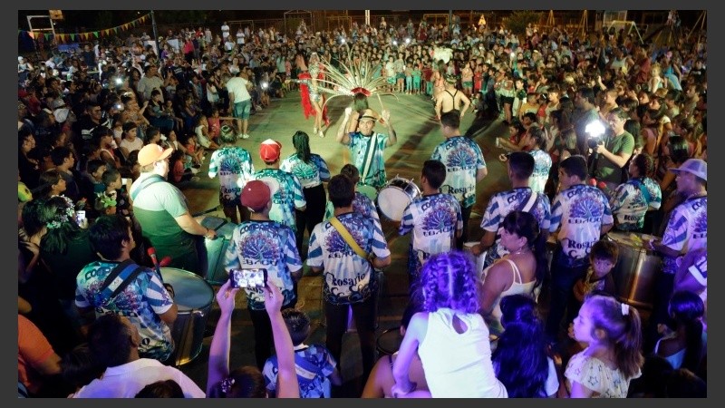 Y para cerrar la noche se suben al escenario el grupo de percusión Cafundó y la murga rosarina de estilo uruguayo Los Vecinos Re Contentos.
