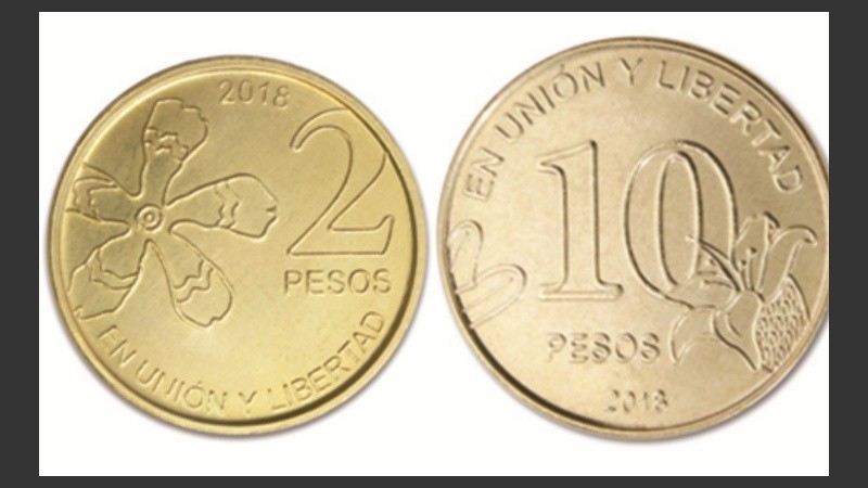 La nueva línea de monedas de dos y diez pesos que lanzó el Banco Central, con las imágenes del palo borracho y el caldén, entraron en circulación este miércoles. Se suman a las de un peso y cinco pesos que ya tienen los diseños del jacarandá y el arrayán.
