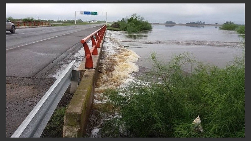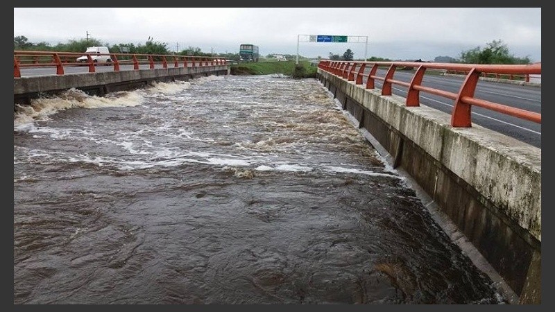 Al igual que sucedió meses atrás, las lluvias potenciaron el cauce y el mismo ya está ingresando al corredor vial, principalmente en la mano que se dirige hacia Rosario.