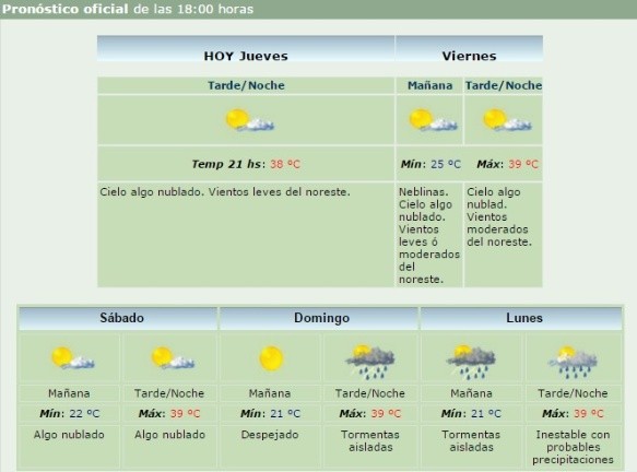 El pronóstico oficial indica que seguirán las temperaturas máximas en torno a los 40 grados y recién en el comienzo de la semana próxima podrían llegar algunas lluvias.