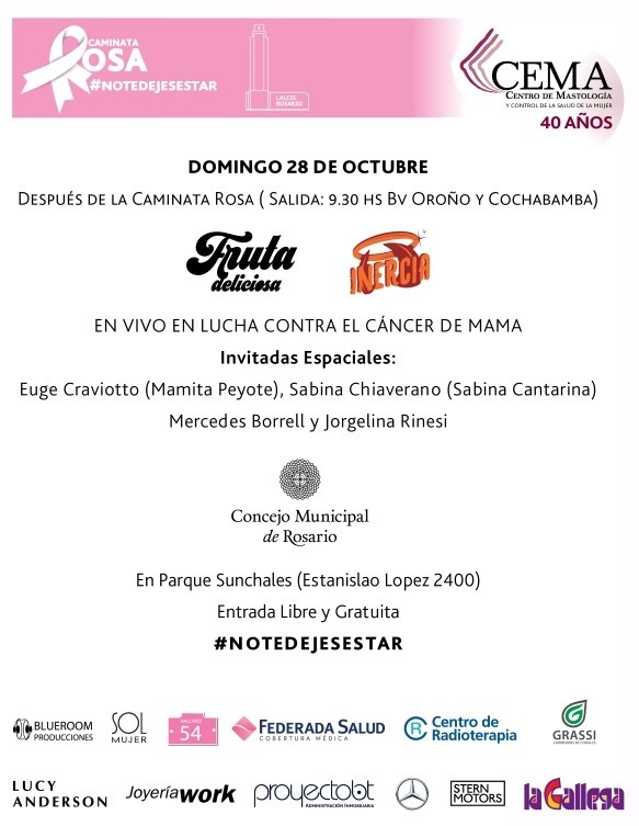 Organizado por Lalcec Rosario y el Centro de Mastología (Cema), la caminata se realizará el domingo 28 de octubre, mes de sensibilización sobre el cáncer de mama. El objetivo de la iniciativa es generar conciencia sobre los controles periódicos para prevenir tumores.