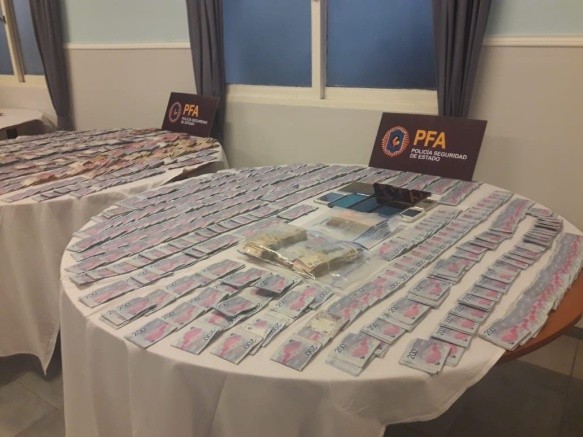 Además se secuestró una gran cantidad de dinero en efectivo –más de un millón de pesos argentinos, 800 dólares estadounidenses y 100 euros– dos vehículos y una moto, 27 celulares, documentación y dispositivos electrónicos.