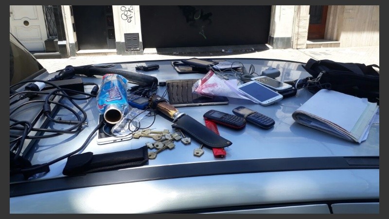Entre los elementos secuestrados hay dos automóviles, dos motos, una importante cantidad de dinero en efectivo, celulares, equipos de comunicación, notebooks, Ipads, y otros elementos de interés para la causa. En el allanamiento de este jueves en Ayacucho al 4000 se procedió al secuestro de más celulares, chips de teléfono, tarjetas de memoria y otros elementos de interés para la causa.