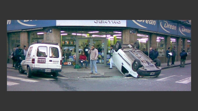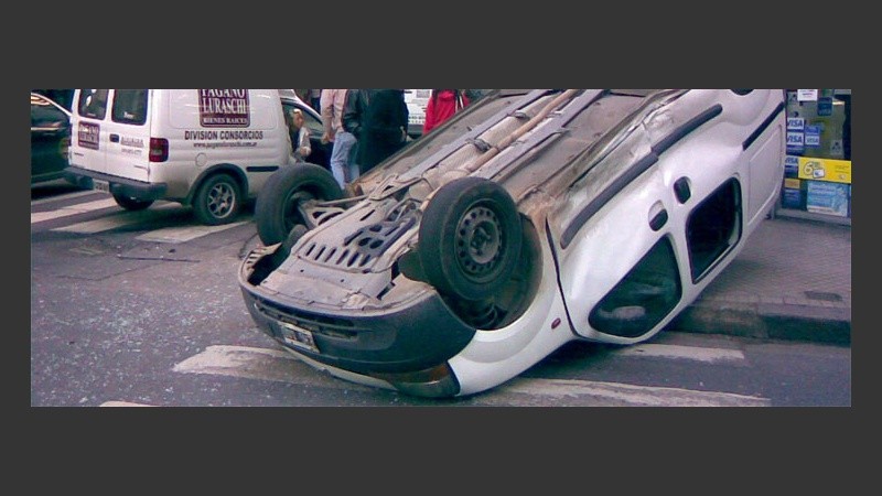 Sin embargo, la prueba de la violencia del choque es que uno de los vehículos, un Renault Kangoo, volcó y quedó literalmente ruedas para rriba. El otro era un Chevrolet combo, de una empresa inmobiliaria.
