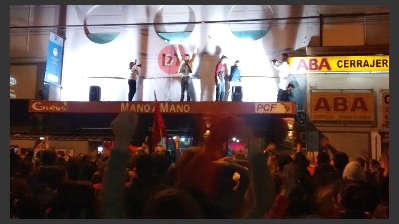 Afuera del Distrito Siete, en Ovidio Lagos y Córdoba, se desató un festejo rojo de un fuerza joven que no para de crecer, y los discursos fueron desde el techo.