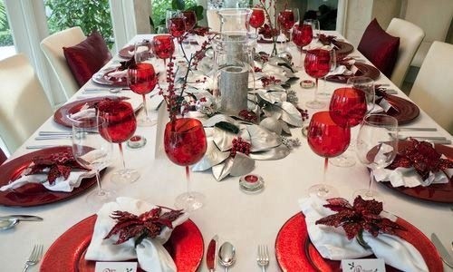 Para comenzar, es recomendable definir la cantidad de comensales, disponiendo de un lugar del tamaño adecuado. Con respecto al mantel, puede ser blanco junto a un camino de mesa, o bien individuales rojos, por ejemplo, con la vajilla de color blanca y cubertería plateada. Así como alguna opción más rústica.