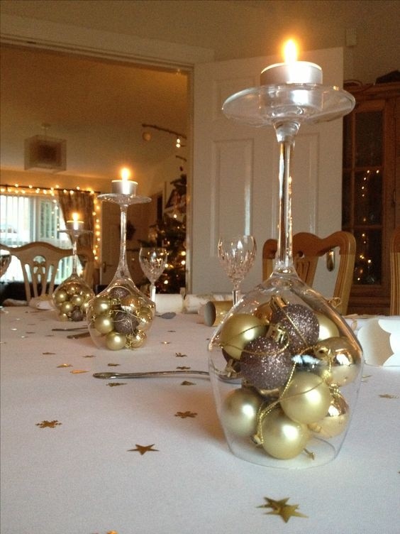 Agregá también diferentes adornos, hechos con todo tipo de elementos, como por ejemplo un centro de mesa donde resalten los clásicos colores navideños: el dorado y el rojo.