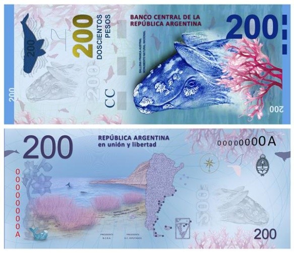 Infobae.com publicó que los 200 pesos que llevarán a la Ballena Franca Austral, será presentado en la ciudad chubutense de Puerto Madryn. Se suma al de $500 para "mejorar el funcionamiento de los cajeros y reducir los costos de traslado de efectivo", según consideró el Banco Central.