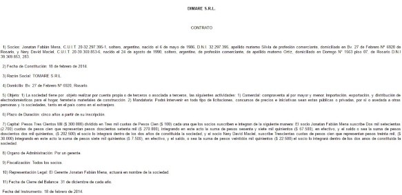 La firma Dimare SRL fue inscripta y publicada en el Boletín Oficial de la provincia. Sus integrantes alquilaron un predio, le pusieron toda la cartelería y hasta abrieron una página web.